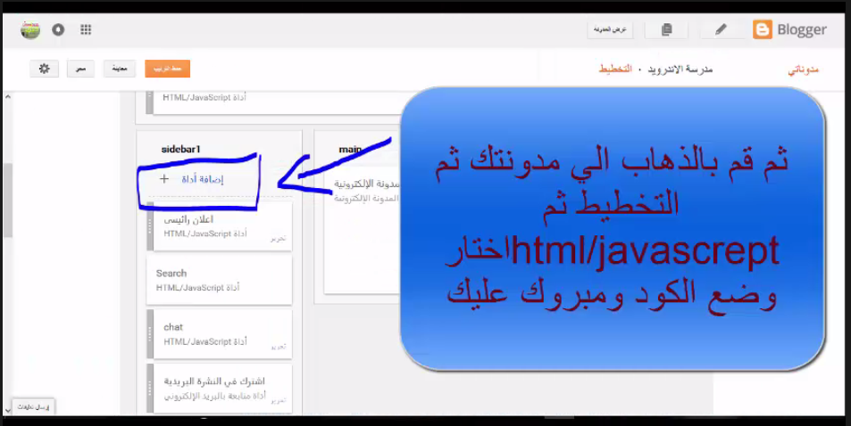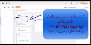 ثم اذهب الي المدونة >لوحة التحكم>التخطيط>اداة جديدة >html/javascrept